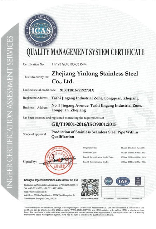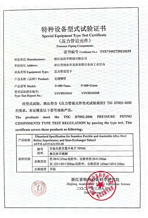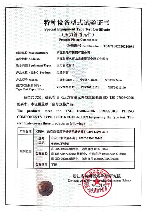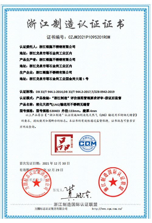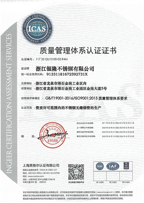 浙江銀隆不銹鋼有限公司創(chuàng)始于2006年,是一家專業(yè)生產(chǎn)不銹鋼無縫管的企業(yè)。公司位于浙江麗水市,企業(yè)注冊(cè)總資金貳億壹仟柒佰肆拾玖萬(wàn)元,擁有4家工廠,占地總面積11萬(wàn)平方米,職工530人,年產(chǎn)不銹鋼無縫管5萬(wàn)噸。